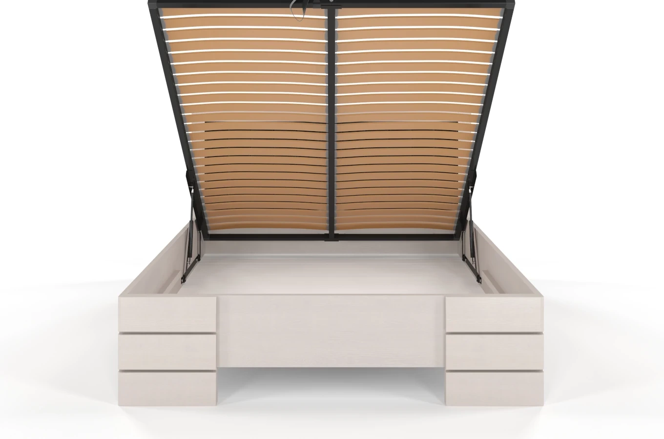 Do każdego łóżka z pojemnikiem na pościel dołączamy bezpłatnie zagęszczony stelaż z giętej sklejki brzozowej. Taki stelaż zapewnia najlepsze podparcie dla materaca oraz zapewnia jego długą żywotność.