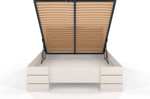 • Tapicerowane łóżko drewniane - bukowe Visby Gotland High BC (skrzynia na pościel)