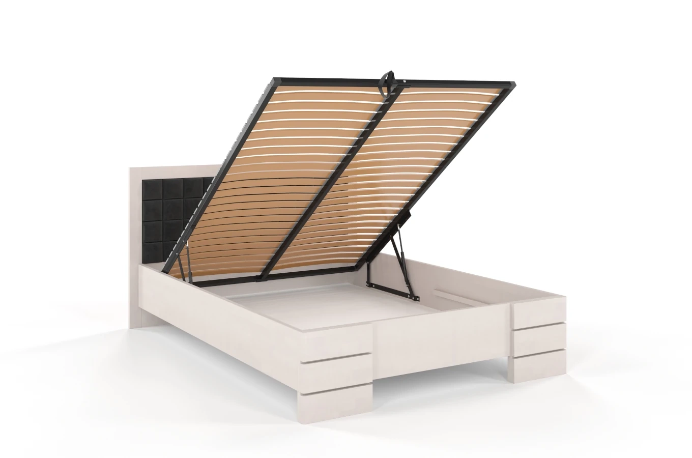 Tapicerowane łóżko drewniane - bukowe Visby Gotland High BC (skrzynia na pościel)