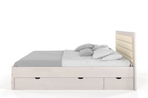 Tapicerowane łóżko drewniane - sosnowe Visby Gotland High Drawers (z szufladami)