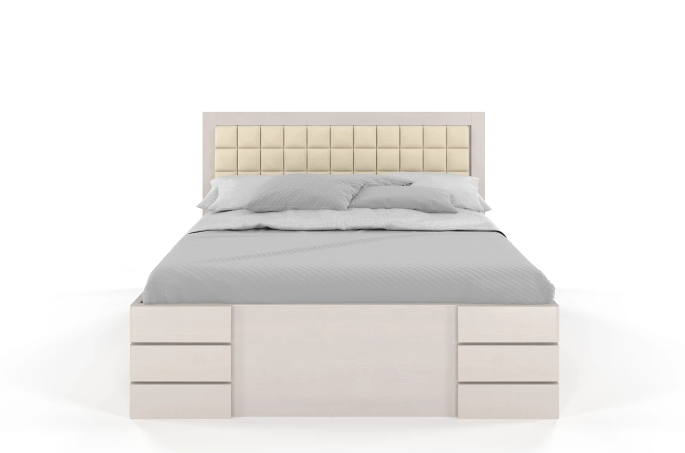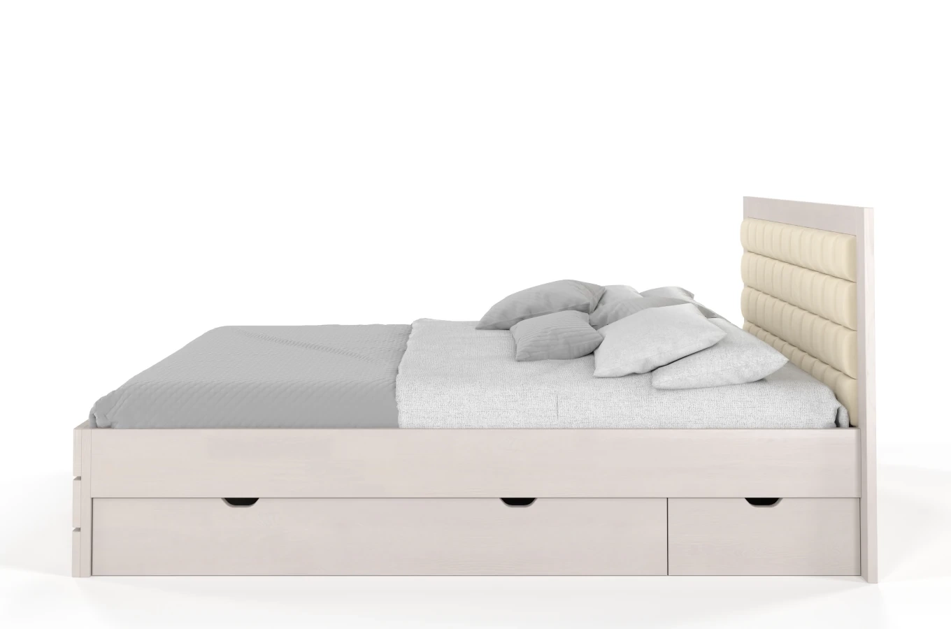 • Tapicerowane łóżko drewniane - sosnowe Visby Gotland High Drawers (z szufladami)