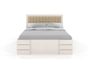 Tapicerowane łóżko drewniane - bukowe Visby GOTLAND High Drawers