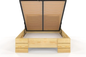 Tapicerowane łóżko drewniane - sosnowe Visby GOTLAND High BC Long (Skrzynia na pościel)
