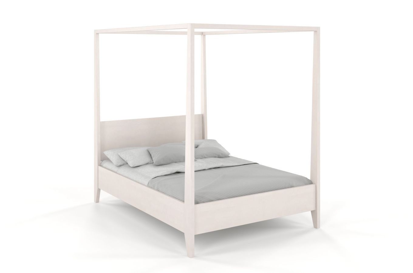 Visby CANOPY to wysokie łóżko z konstrukcją przygotowaną do zawieszenia baldachimu. Jest nie tylko piękne, ale również bardzo solidne. Mimo dużych gabarytów, mebel ten ma zgrabną sylwetkę. Wysokie nogi, które w dolnej części są dość szerokie, zaprojektowano tak, że zwężają się do góry.