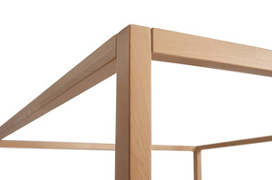 Łóżko Visby CANOPY ma wysoki zagłówek, na którym wygodnie można oprzeć poduszkę. Wysoko ułożone posłanie (materac na wysokości ok. 40 cm) gwarantuje wygodne i łatwe wstawanie. Ta wysokość chroni nas także przez roztoczami i innymi drobnoustrojami, które żyją bliżej podłogi. Łóżko Visby CANOPY opiera się na 4 grubych nogach (4x10 cm), które mają wysokość 195 cm. U góry łączą je 4 solidne poprzeczki o przekroju 4x4 cm.