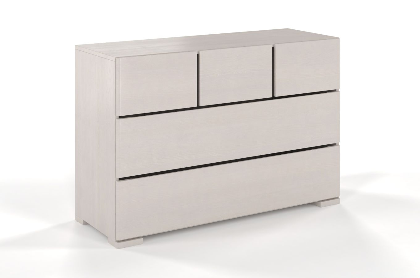 Komoda Sandemo jest idealnym dodatkiem do łóżka z linii Visby Sandemo. Posłuży do przechowywania odzieży, bielizny, pościeli, ale może być wykorzystywana do innych celów. Jest prosta, subtelna i zarazem praktyczna, a jej stylistyka oparta na minimalizmie dodaje powagi i elegancji.