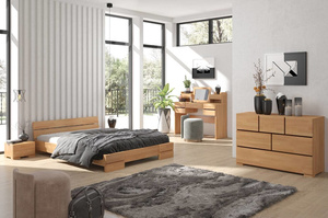 Idealne do różnych wnętrz: Sandemo jest dość niskie, ale dzięki temu nie dominuje w przestrzeni pomieszczenia, w którym się znajduje. Doskonale sprawdza się w dużych, przestronnych sypialniach, ale też w małych pokoikach. Jego największą zaletą jest fakt maksymalnego wykorzystania przestrzeni materaca, stabilność i solidna konstrukcja.