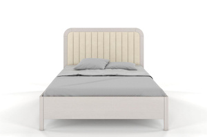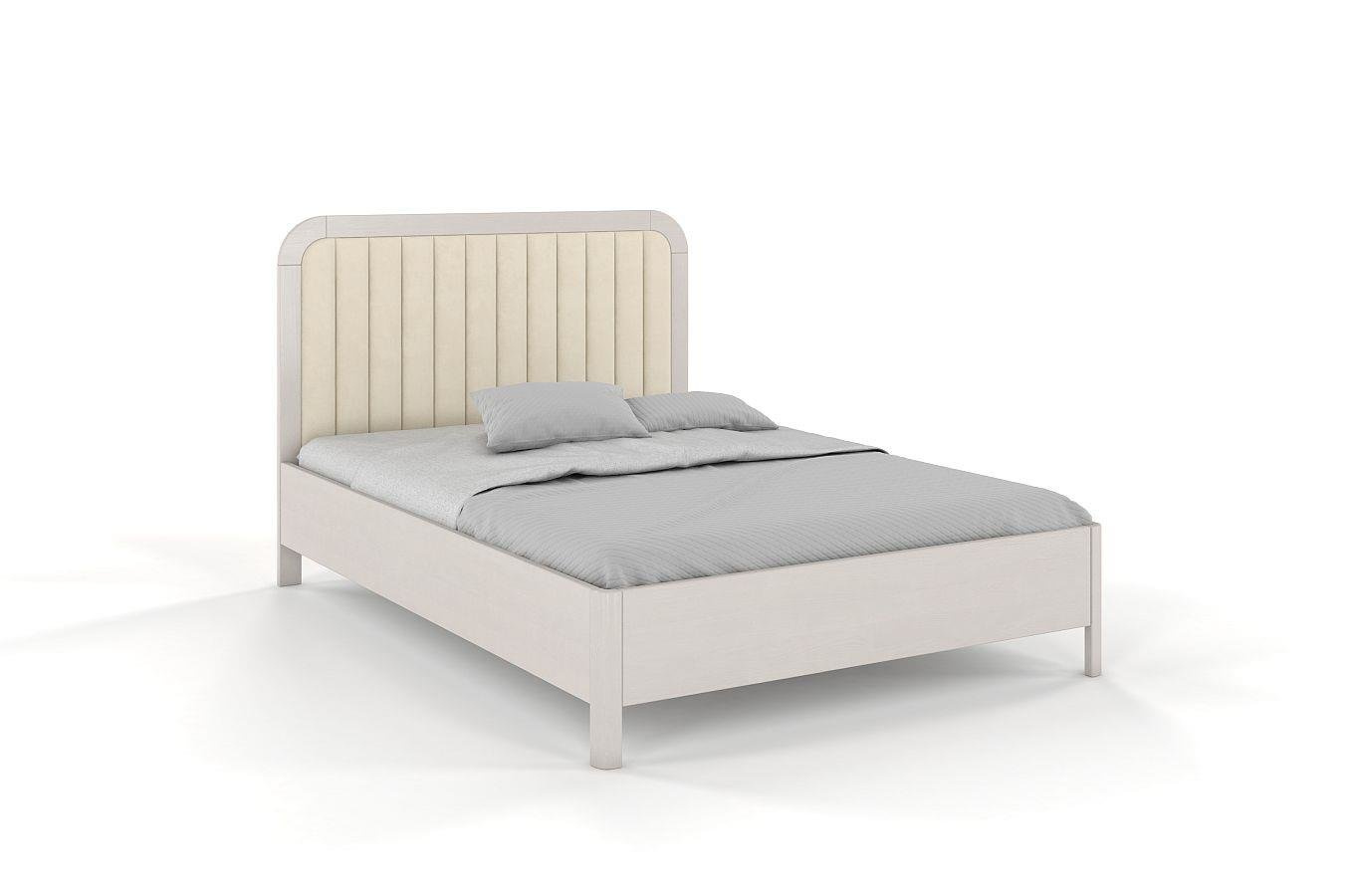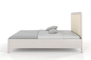 Tapicerowane łóżko drewniane sosnowe Visby MODENA z wysokim zagłówkiem / 200x200 cm, kolor biały, zagłówek Casablanca 2301