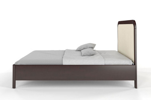 • Tapicerowane łóżko drewniane bukowe Visby MODENA z wysokim zagłówkiem / 200x200 cm, kolor palisander, zagłówek Casablanca 2301