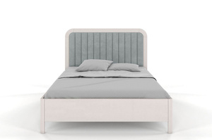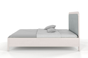 • Tapicerowane łóżko drewniane bukowe Visby MODENA z wysokim zagłówkiem / 200x200 cm, kolor biały, zagłówek Casablanca 2314