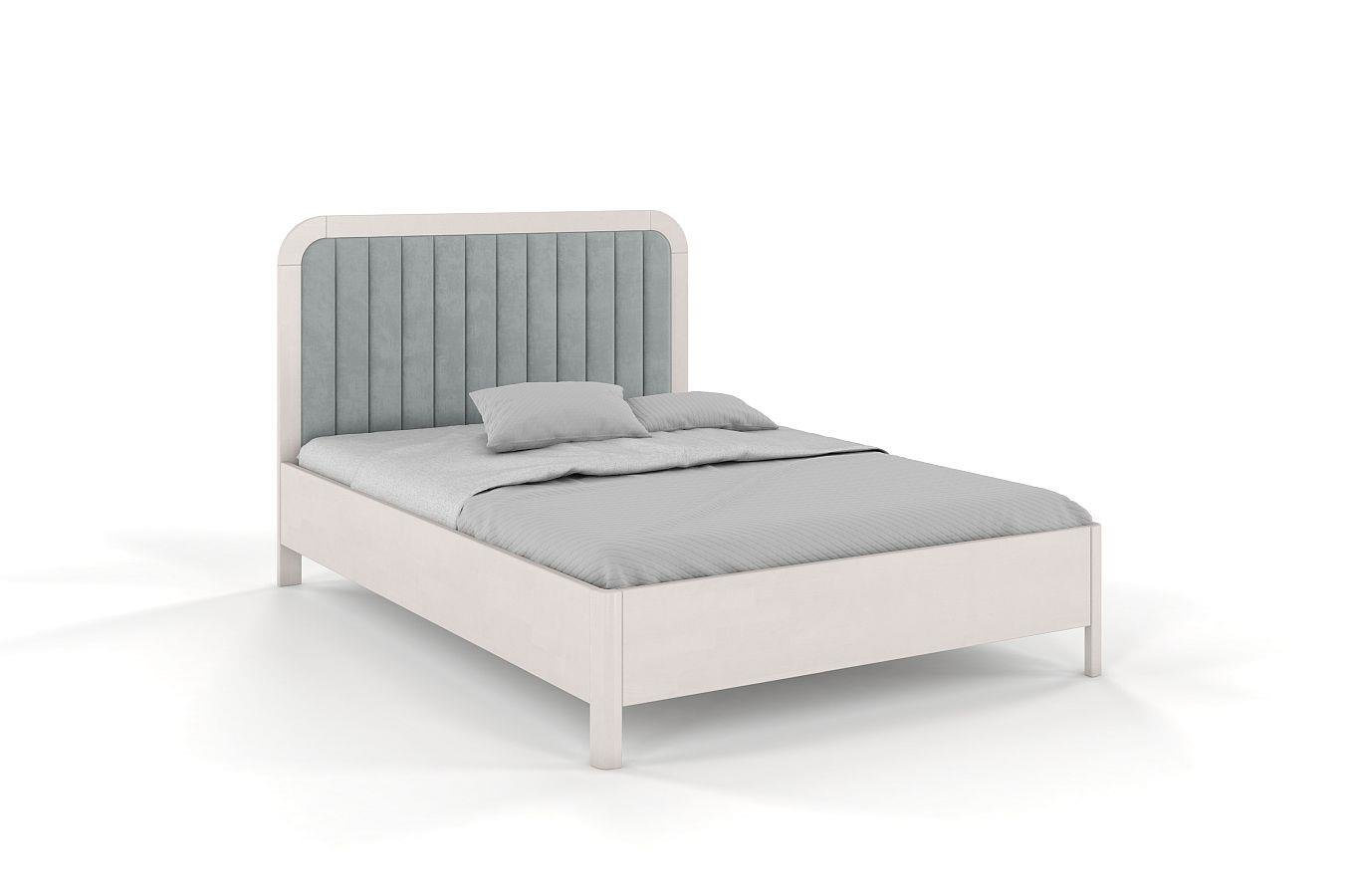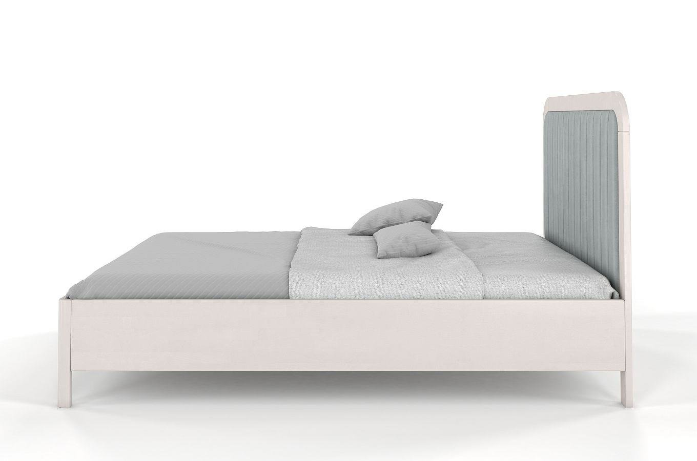 Tapicerowane łóżko drewniane bukowe Visby MODENA z wysokim zagłówkiem / 200x200 cm, kolor biały, zagłówek Casablanca 2314