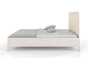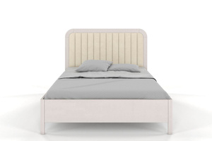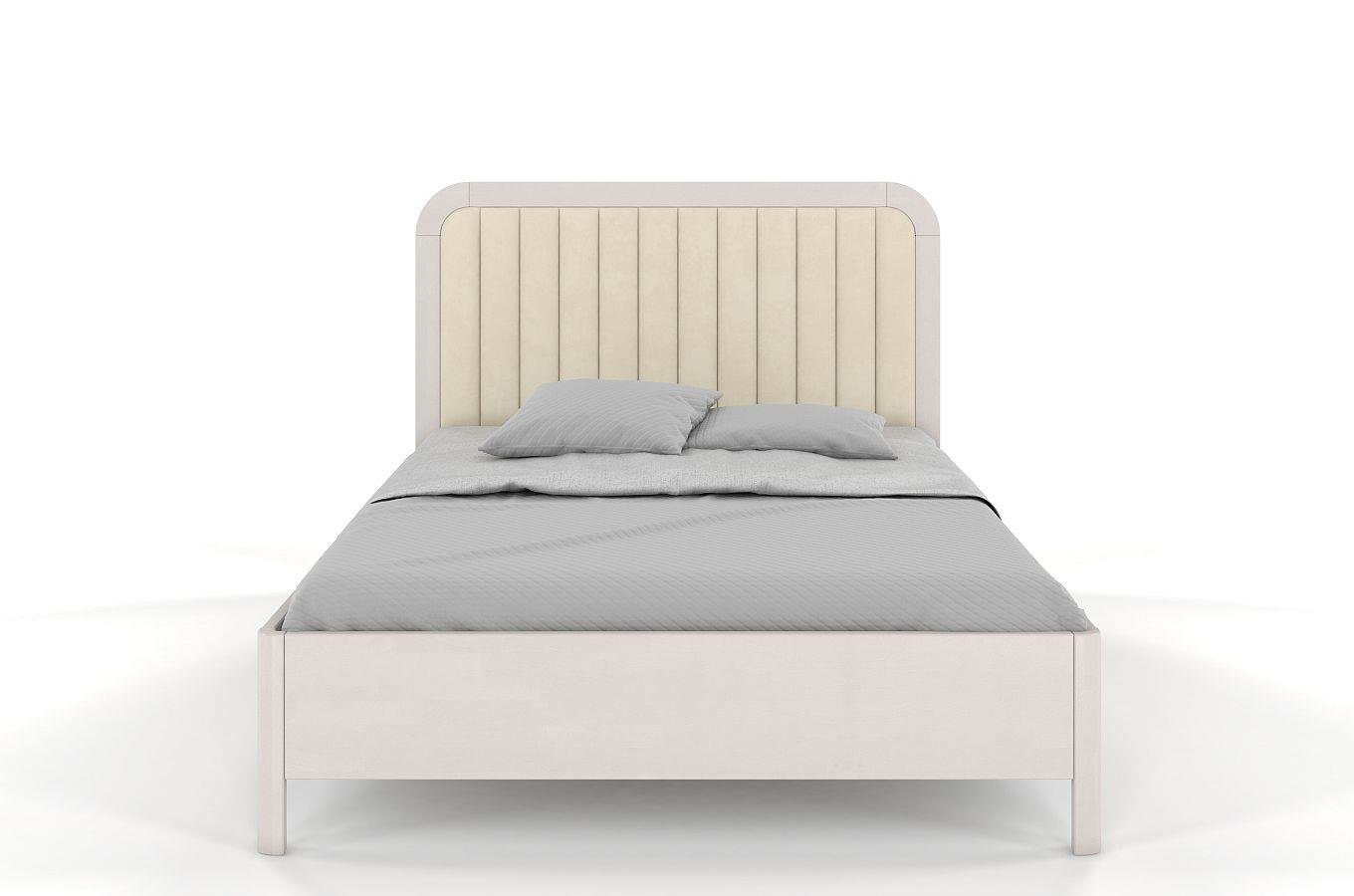 • Tapicerowane łóżko drewniane bukowe Visby MODENA z wysokim zagłówkiem / 200x200 cm, kolor biały, zagłówek Casablanca 2301