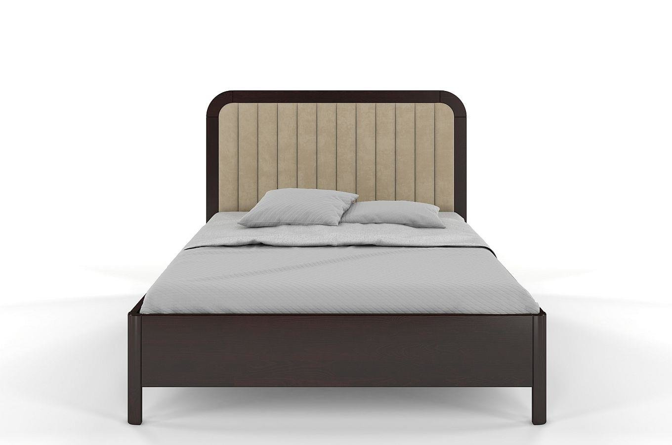 Tapicerowane łóżko drewniane sosnowe Visby MODENA z wysokim zagłówkiem / 180x200 cm, kolor palisander, zagłówek Casablanca 2303