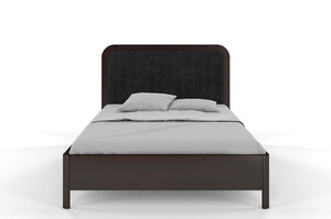 Tapicerowane łóżko drewniane sosnowe Visby MODENA z wysokim zagłówkiem / 160x200 cm, kolor palisander, zagłówek Casablanca 2316