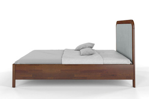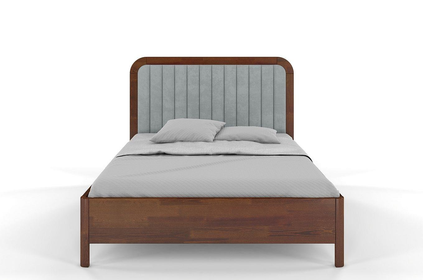 Tapicerowane łóżko drewniane sosnowe Visby MODENA z wysokim zagłówkiem / 160x200 cm, kolor orzech, zagłówek Casablanca 2314