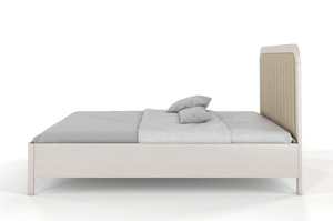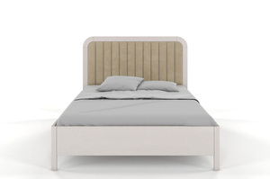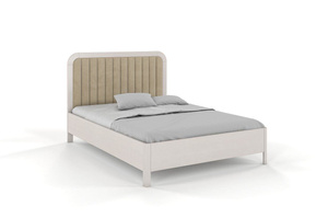 Tapicerowane łóżko drewniane sosnowe Visby MODENA z wysokim zagłówkiem / 160x200 cm, kolor biały, zagłówek Casablanca 2303