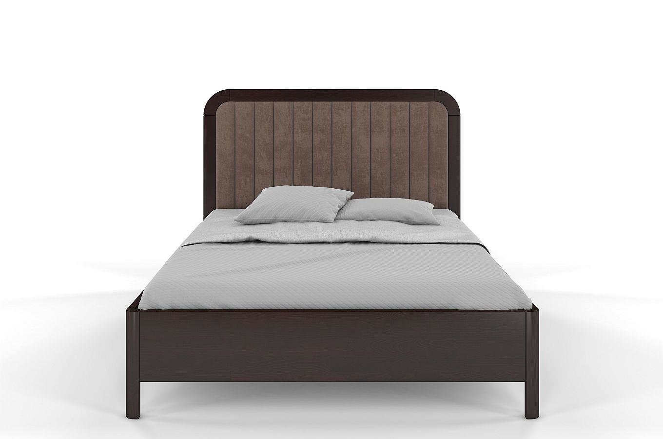 Tapicerowane łóżko drewniane sosnowe Visby MODENA z wysokim zagłówkiem / 140x200 cm, kolor palisander, zagłówek Casablanca 2306