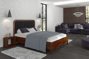 Elementem wyróżniającym się jest wysoki, tapicerowany zagłówek z pionowymi przeszyciami, otoczony drewnianą ramą o zaokrąglonych krawędziach. Zaokrąglone są również wysokie nogi łóżka. Brak ostrych krawędzi powoduje, że łóżko jest bezpieczne w użytkowaniu i wyróżnia się na tle innych modeli. Odpowiednia wysokość nóg ułatwi sprzątanie - pod łóżkiem zmieści się robot sprzątający !