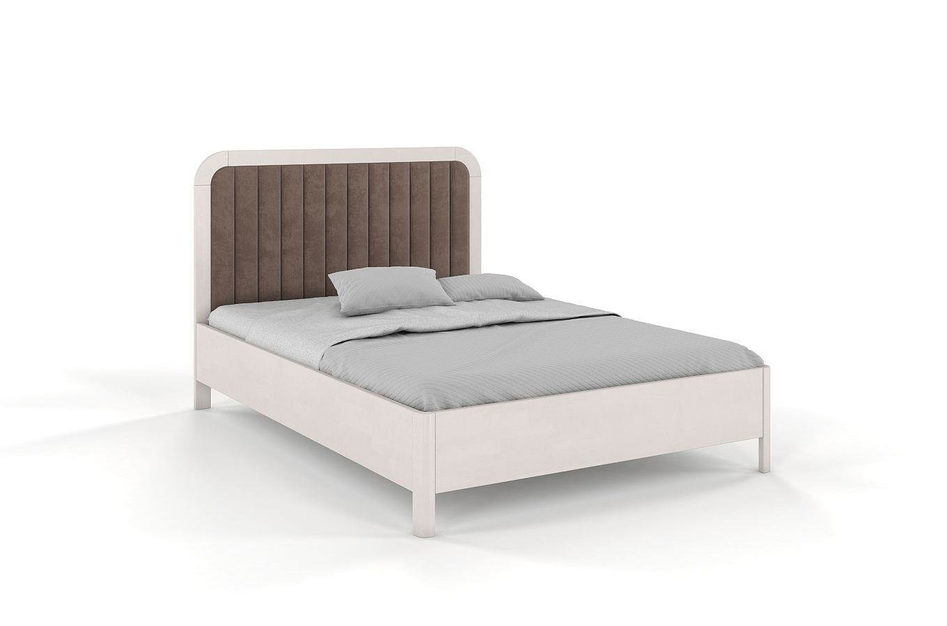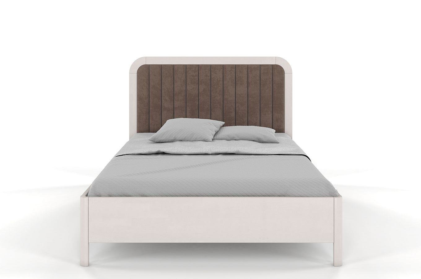 Tapicerowane łóżko drewniane bukowe Visby MODENA z wysokim zagłówkiem / 140x200 cm, kolor biały, zagłówek Casablanca 2306