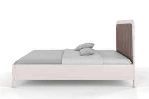 • Tapicerowane łóżko drewniane bukowe Visby MODENA z wysokim zagłówkiem / 140x200 cm, kolor biały, zagłówek Casablanca 2306