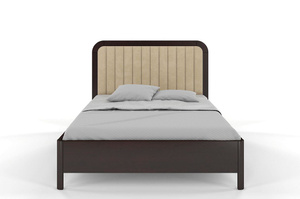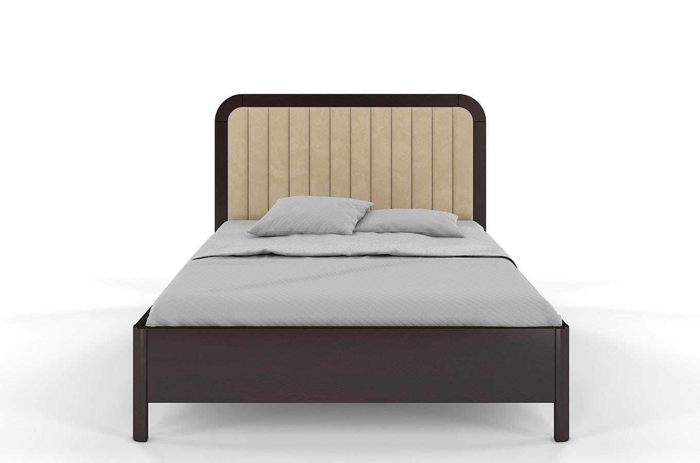 • Tapicerowane łóżko drewniane sosnowe Visby MODENA z wysokim zagłówkiem / 120x200 cm, kolor palisander, zagłówek Casablanca 2302