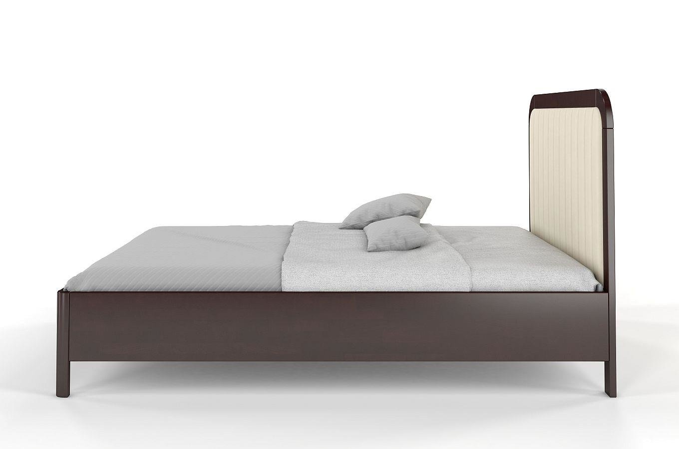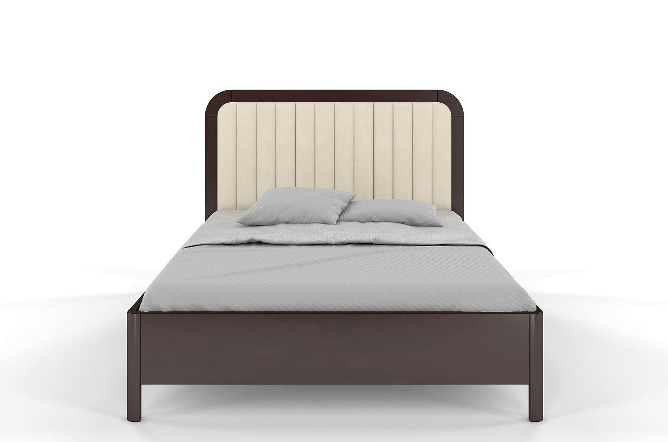Tapicerowane łóżko drewniane bukowe Visby MODENA z wysokim zagłówkiem / 120x200 cm, kolor palisander, zagłówek Casablanca 2301
