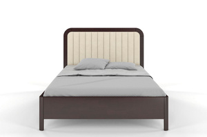 • Tapicerowane łóżko drewniane bukowe Visby MODENA z wysokim zagłówkiem / 120x200 cm, kolor palisander, zagłówek Casablanca 2301
