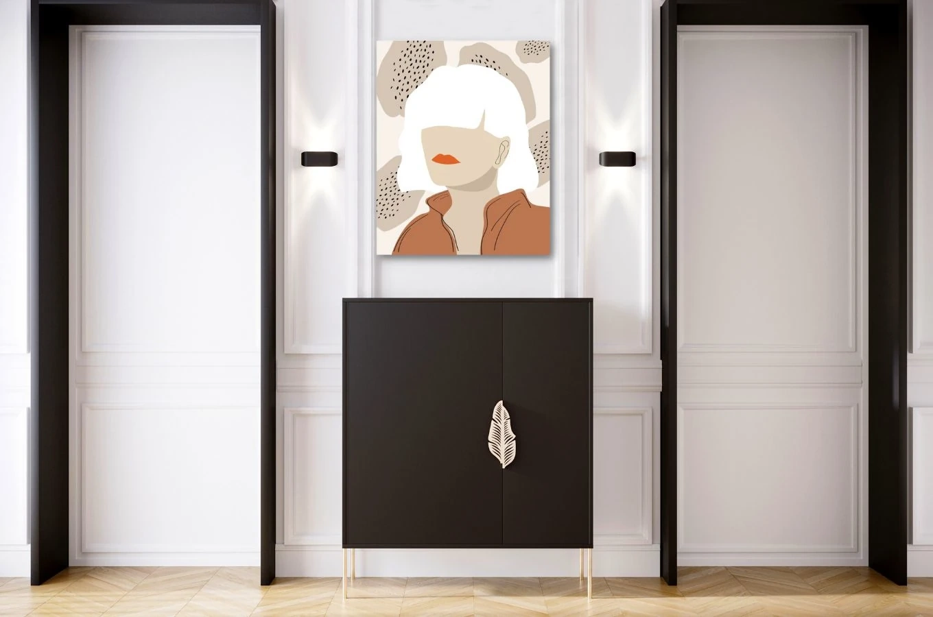 • Abstrakcyjny portret tajemniczej kobiety, utrzymany w beżowej tonacji. Dzięki uniwersalnej kolorystyce, obraz doskonale wpisze się do każdego wnętrza.