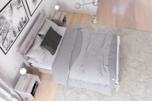 • Ponadczasowe, solidnie wykonane oraz eleganckie łóżko do sypialni. Prosty zagłówek nadaje mu nowoczesności i uniwersalności, a wysokie nogi ułatwiają sprzątanie pod nim - również przy użyciu robota sprzątającego.