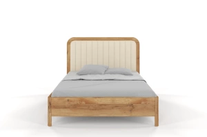 Tapicerowane łóżko drewniane dębowe Visby MODENA z wysokim zagłówkiem / 120x200 cm, lakier naturalny, zagłówek Casablanca 2301