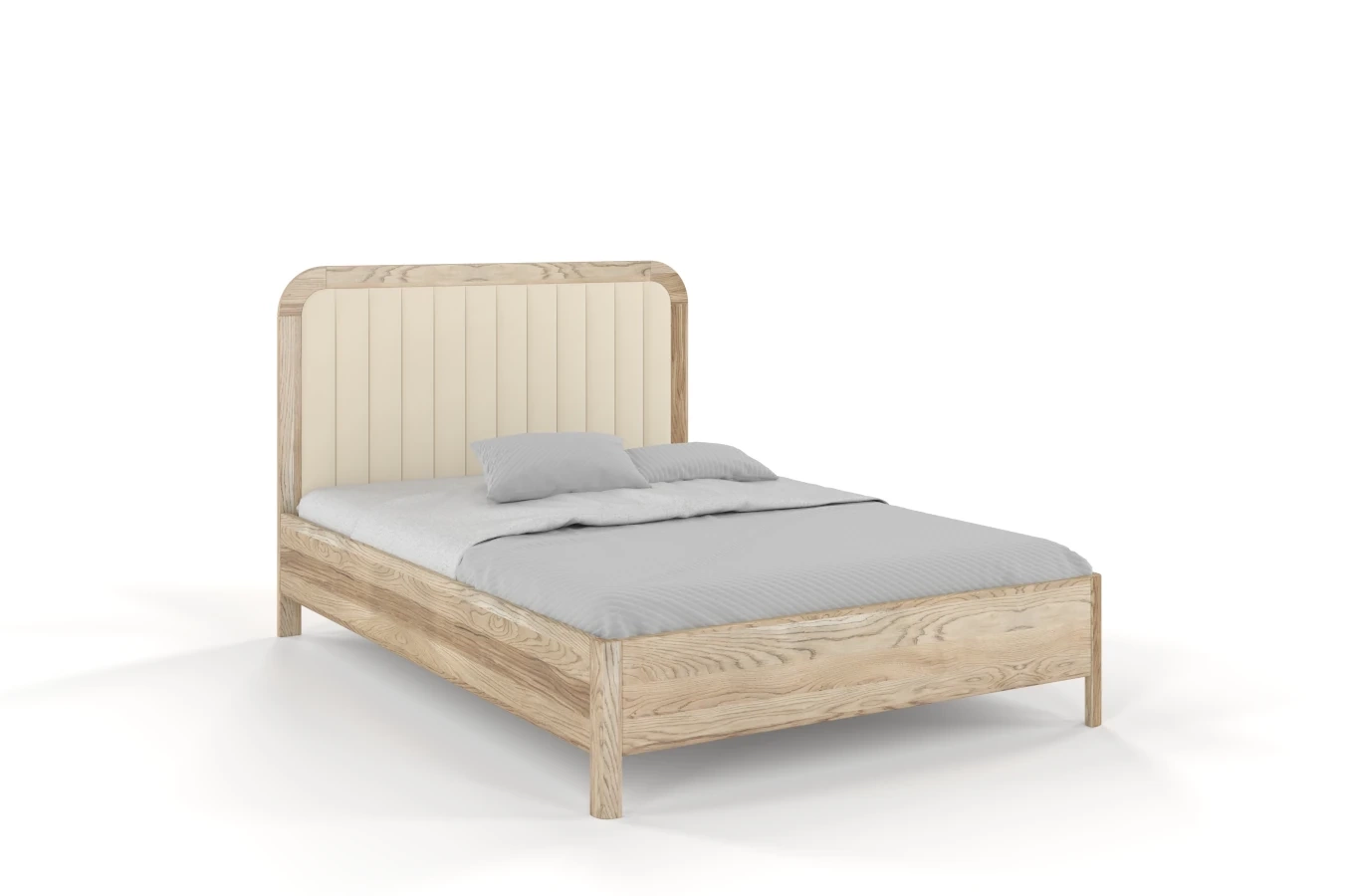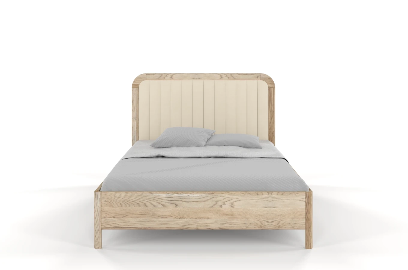 Elementem wyróżniającym prezentowany model jest wysoki, tapicerowany zagłówek z pionowymi przeszyciami, otoczony drewnianą ramą o zaokrąglonych krawędziach. Zaokrąglone są również wysokie nogi łóżka. Brak ostrych kantów sprawia, że łóżko jest bezpieczne w użytkowaniu oraz wyróżnia się na tle innych modeli. Co więcej, odpowiednia wysokość nóg ułatwi sprzątanie - pod łóżkiem zmieści się robot sprzątający!