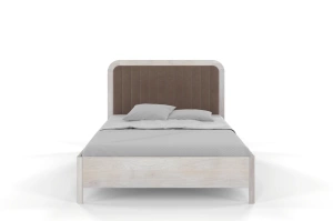 Tapicerowane łóżko drewniane dębowe Visby MODENA z wysokim zagłówkiem / 120x200 cm, olej bielony, zagłówek Casablanca 2306