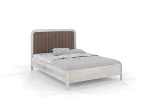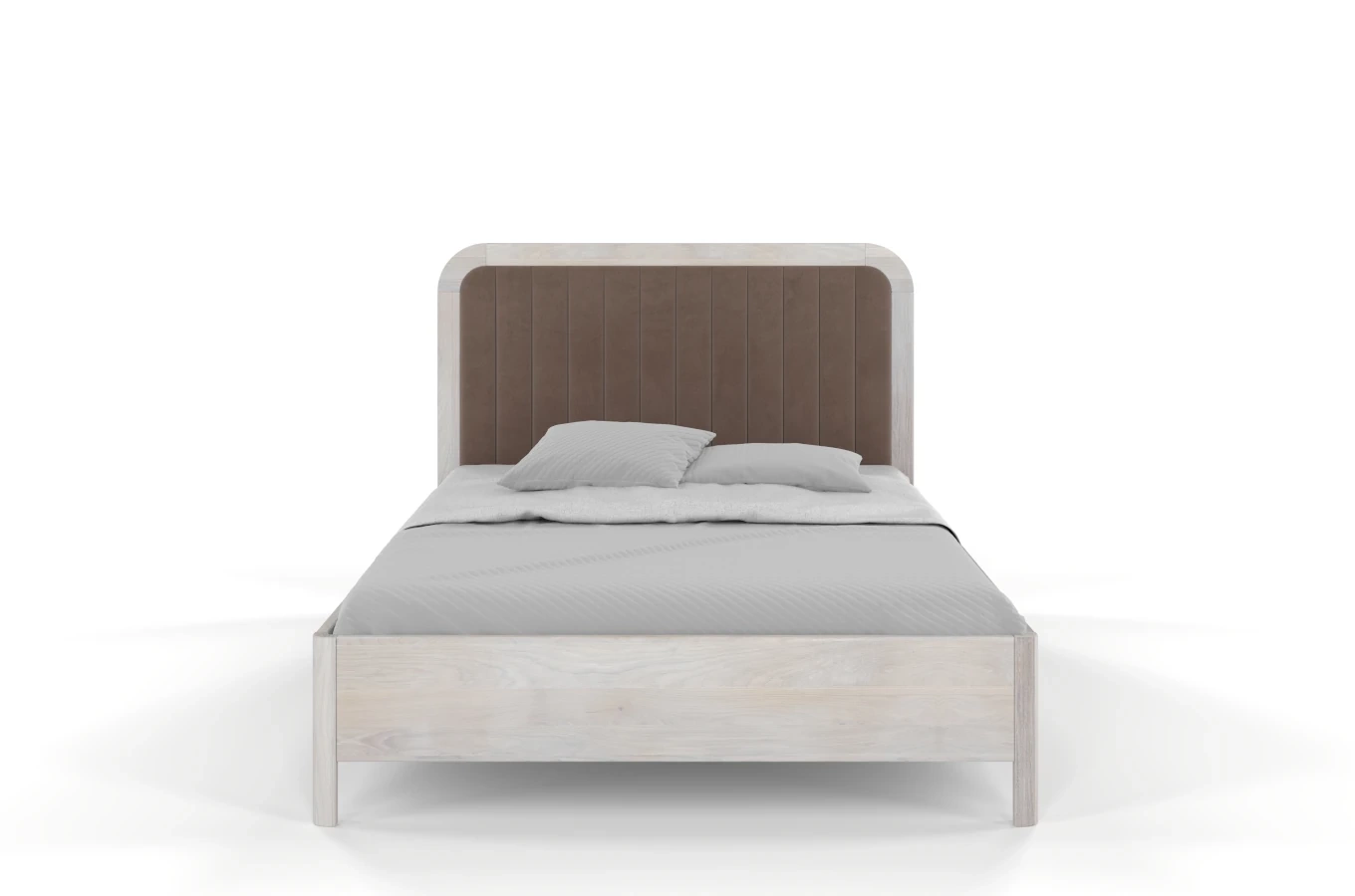 • Tapicerowane łóżko drewniane dębowe Visby MODENA z wysokim zagłówkiem / 120x200 cm, olej bielony, zagłówek Casablanca 2306