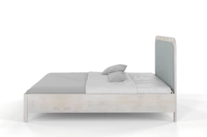 • Tapicerowane łóżko drewniane dębowe Visby MODENA z wysokim zagłówkiem / 120x200 cm, olej bielony, zagłówek Casablanca 2314