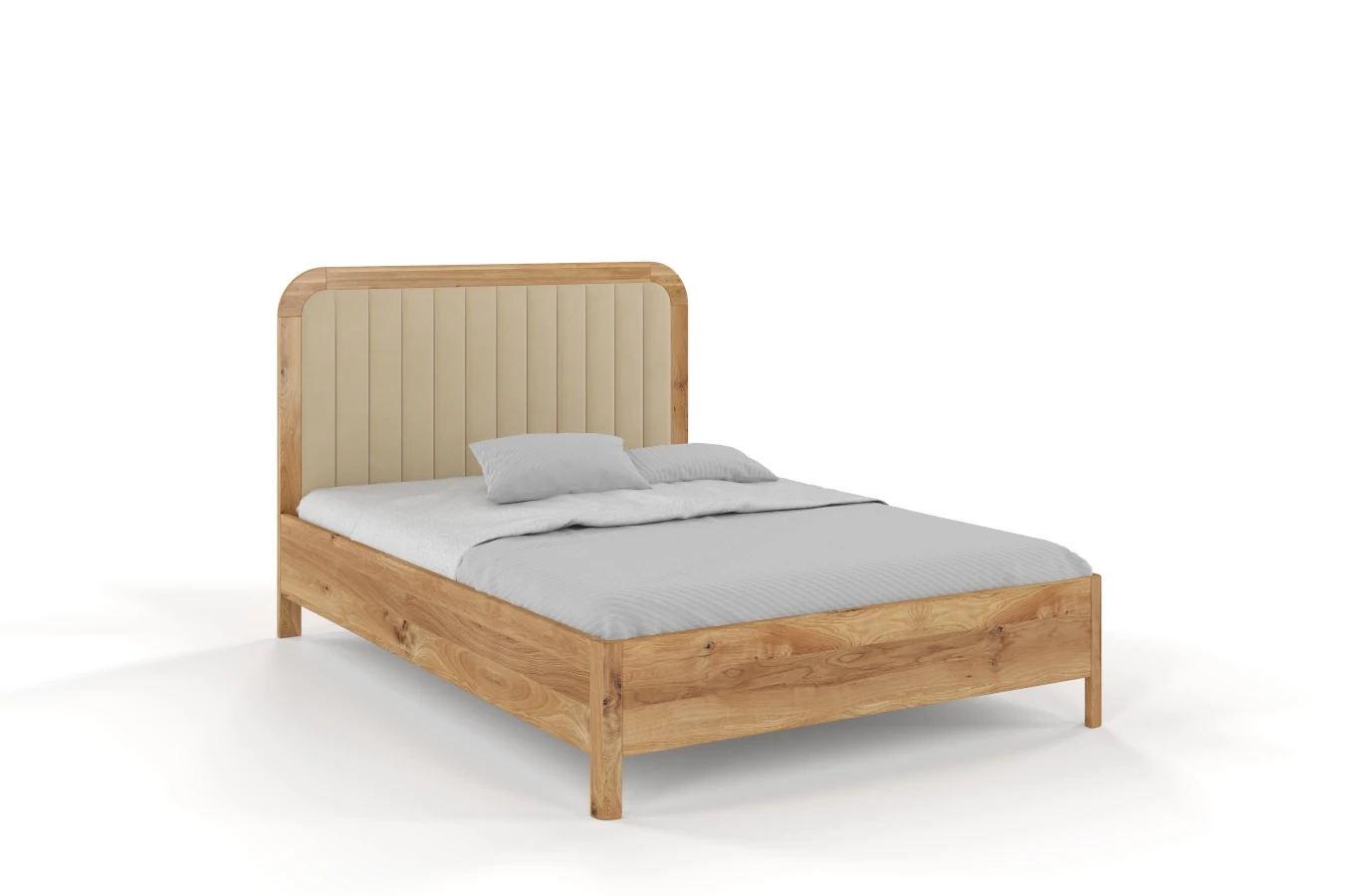 Tapicerowane łóżko drewniane dębowe Visby MODENA z wysokim zagłówkiem / 140x200 cm, olej naturalny, zagłówek Casablanca 2302