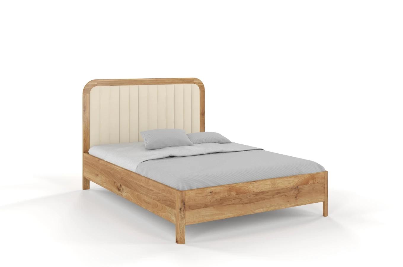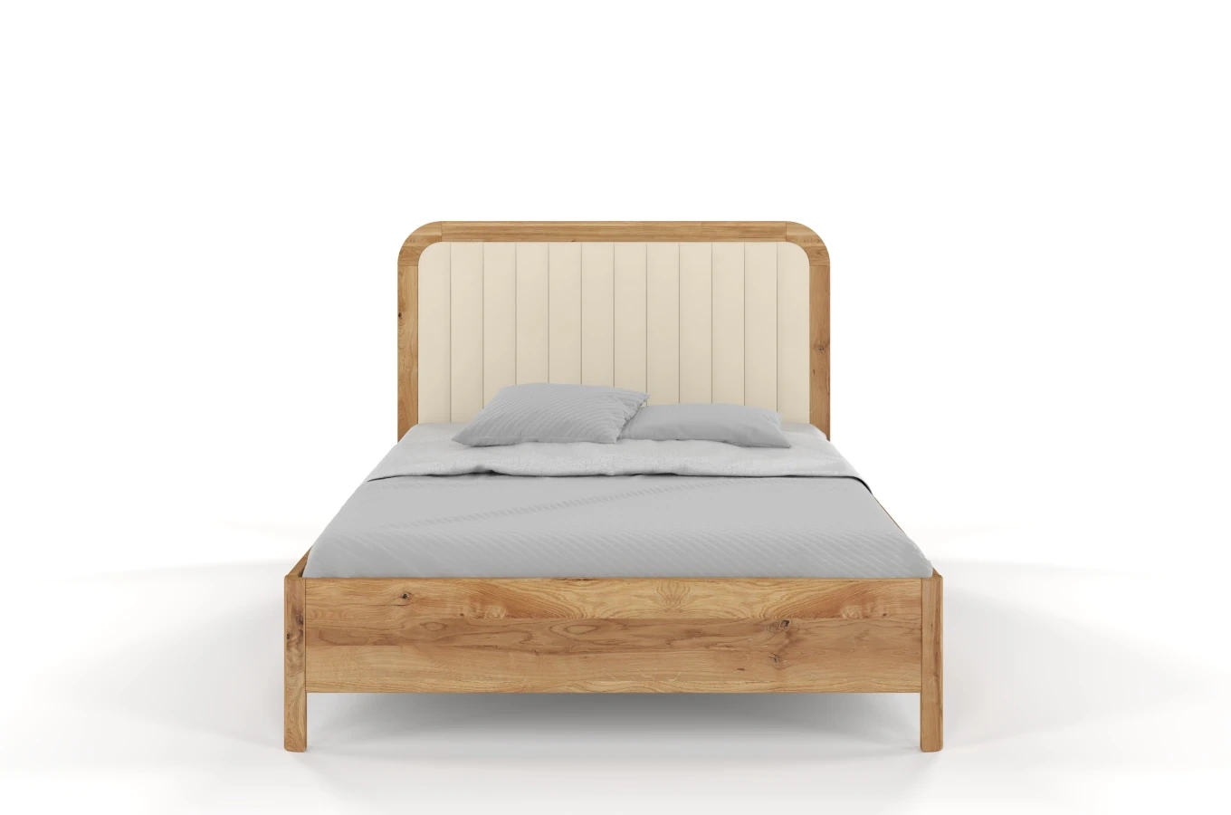 Tapicerowane łóżko drewniane dębowe Visby MODENA z wysokim zagłówkiem / 140x200 cm, lakier naturalny, zagłówek Casablanca 2301