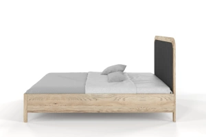 Tapicerowane łóżko drewniane dębowe Visby MODENA z wysokim zagłówkiem / 140x200 cm, olej retro, zagłówek Casablanca 2315