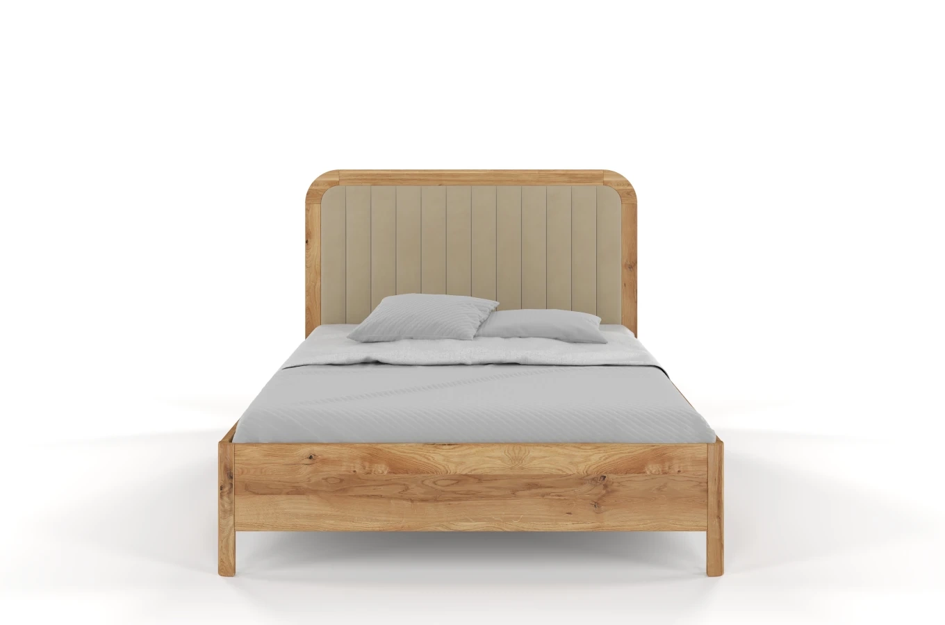 Tapicerowane łóżko drewniane dębowe Visby MODENA z wysokim zagłówkiem / 160x200 cm, lakier naturalny, zagłówek Casablanca 2303