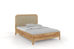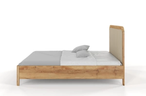 Tapicerowane łóżko drewniane dębowe Visby MODENA z wysokim zagłówkiem / 160x200 cm, olej naturalny, zagłówek Casablanca 2303