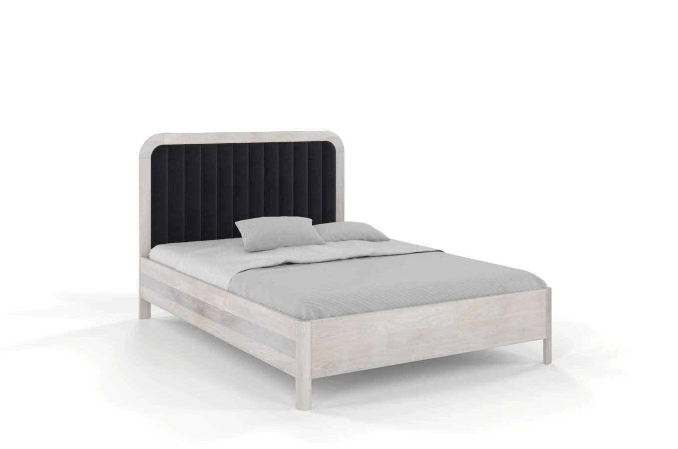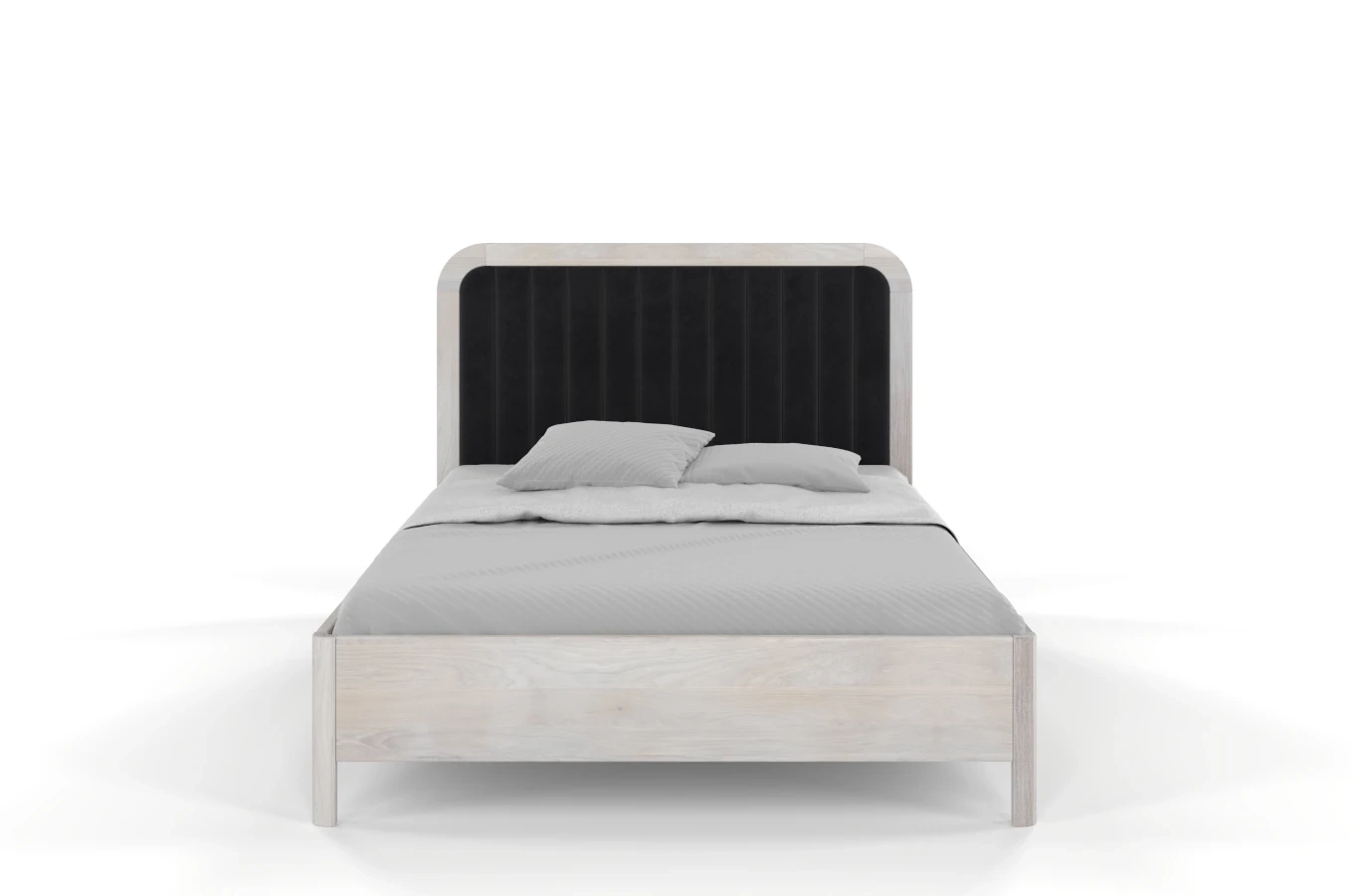 Tapicerowane łóżko drewniane dębowe Visby MODENA z wysokim zagłówkiem / 160x200 cm, olej bielony, zagłówek Casablanca 2316