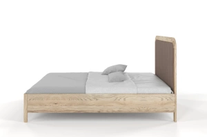 Tapicerowane łóżko drewniane dębowe Visby MODENA z wysokim zagłówkiem / 180x200 cm, olej retro, zagłówek Casablanca 2306