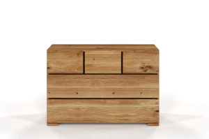 Prosta, pięcioszufladowa komoda o gładkim froncie z kolekcji Sandemo. Meble z tej serii to jedne z najlepiej sprzedających się wyrobów marki Visby. Masywny mebel dzięki prostemu designowi wydaje się być lekki i stabilny. Visby Sandemo został zaprojektowany z myślą o nowoczesnych, europejskich sypialniach. Doskonale prezentuje się w dużych pomieszczeniach, jak i małych, przytulnych pokojach.