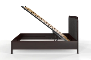 • Tapicerowane łóżko drewniane sosnowe Visby MODENA BC z wysokim zagłówkiem / 140x200 cm, kolor palisander, zagłówek Casablanca 2315 (skrzynia na pościel)