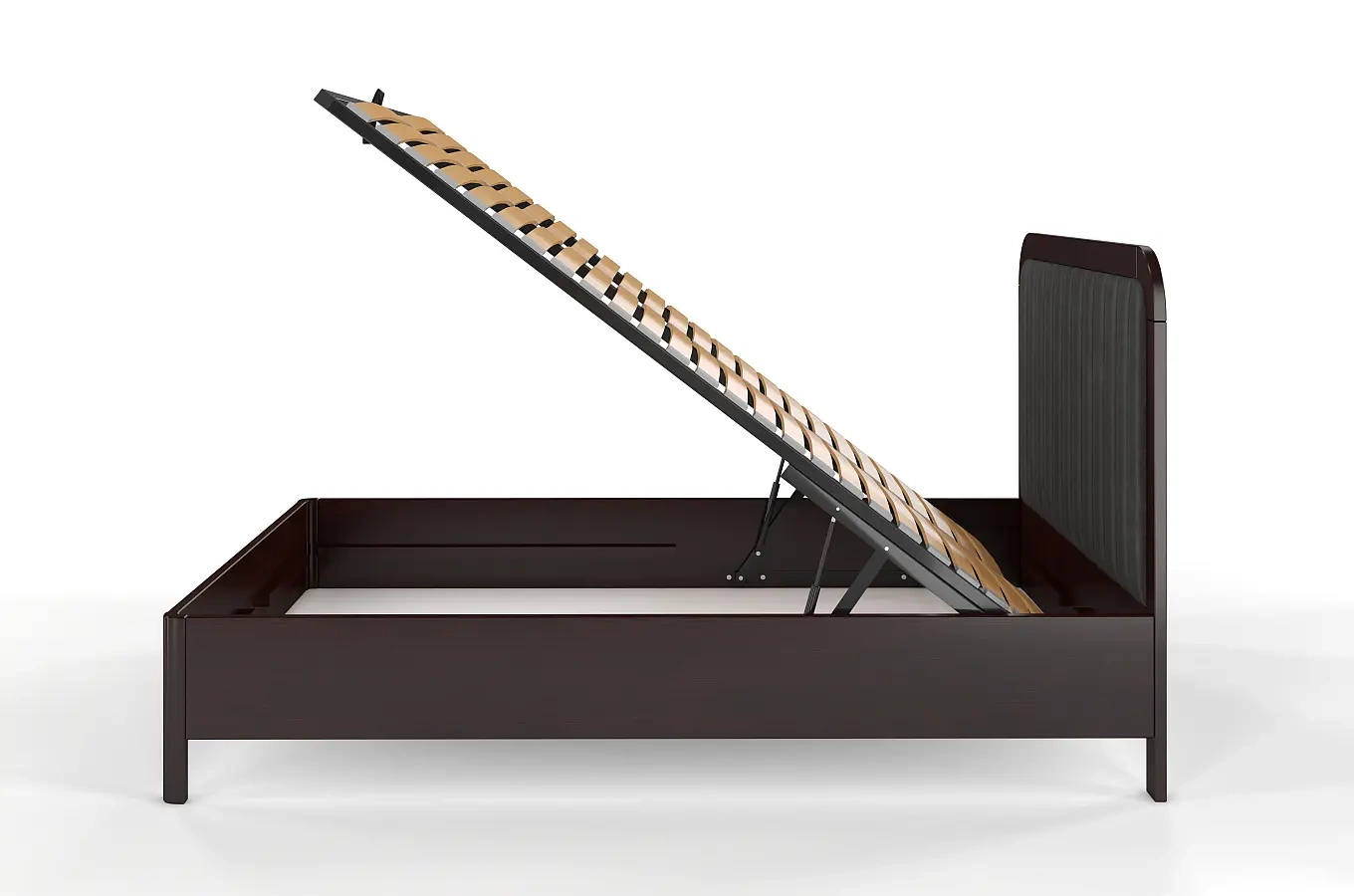 Tapicerowane łóżko drewniane sosnowe Visby MODENA BC z wysokim zagłówkiem / 140x200 cm, kolor palisander, zagłówek Casablanca 2315 (skrzynia na pościel)