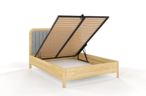 Tapicerowane łóżko drewniane sosnowe Visby MODENA BC z wysokim zagłówkiem / 200x200 cm, kolor naturalny, zagłówek Casablanca 2314 (skrzynia na pościel)