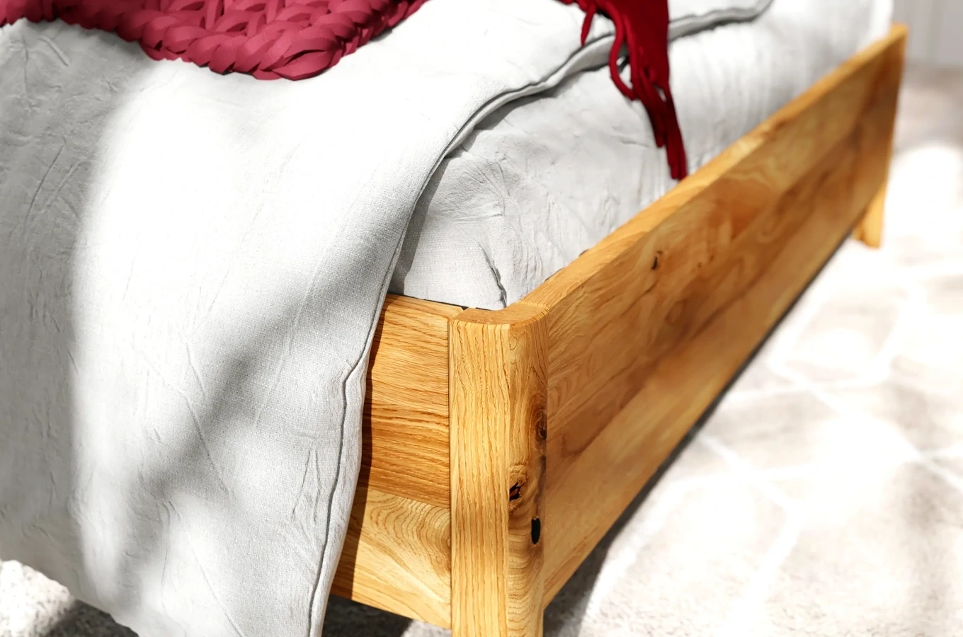 Projektując łóżko drewniane VISBY MODENA BC, skupiono się na detalach. Łóżko wykonane jest z wysokogatunkowego litego drewna dębowego, skręconego na solidne śruby księżycowe - dzięki temu łóżko nie skrzypi, zapewniając spokojny sen.