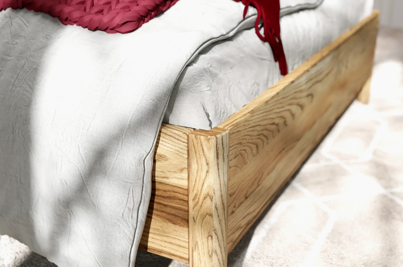Projektując łóżko drewniane VISBY MODENA BC, skupiono się na detalach. Łóżko wykonane jest z wysokogatunkowego litego drewna dębowego, skręconego na solidne śruby księżycowe - dzięki temu łóżko nie skrzypi, zapewniając spokojny sen.
