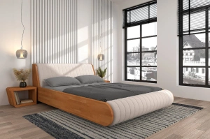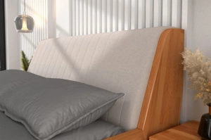 Nowoczesne łóżko drewniane z tapicerowanym zagłówkiem