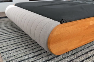 Tapicerowane łóżko drewniane z efektem lewitacji