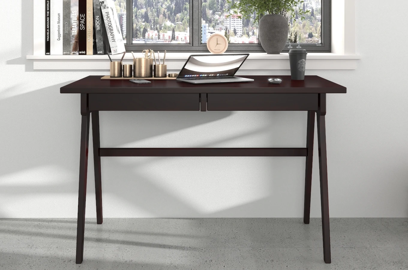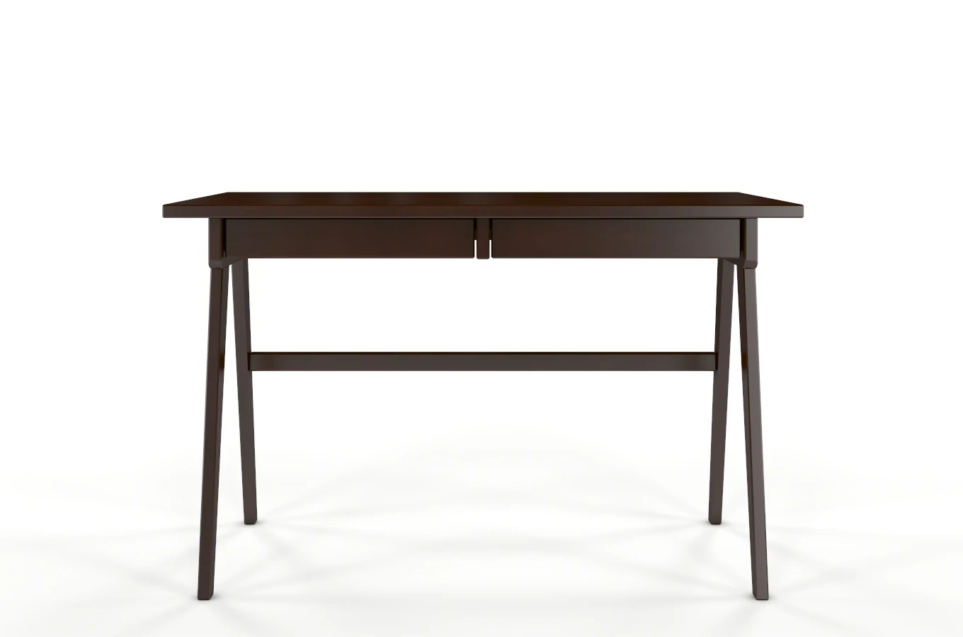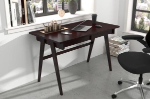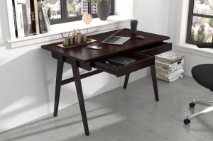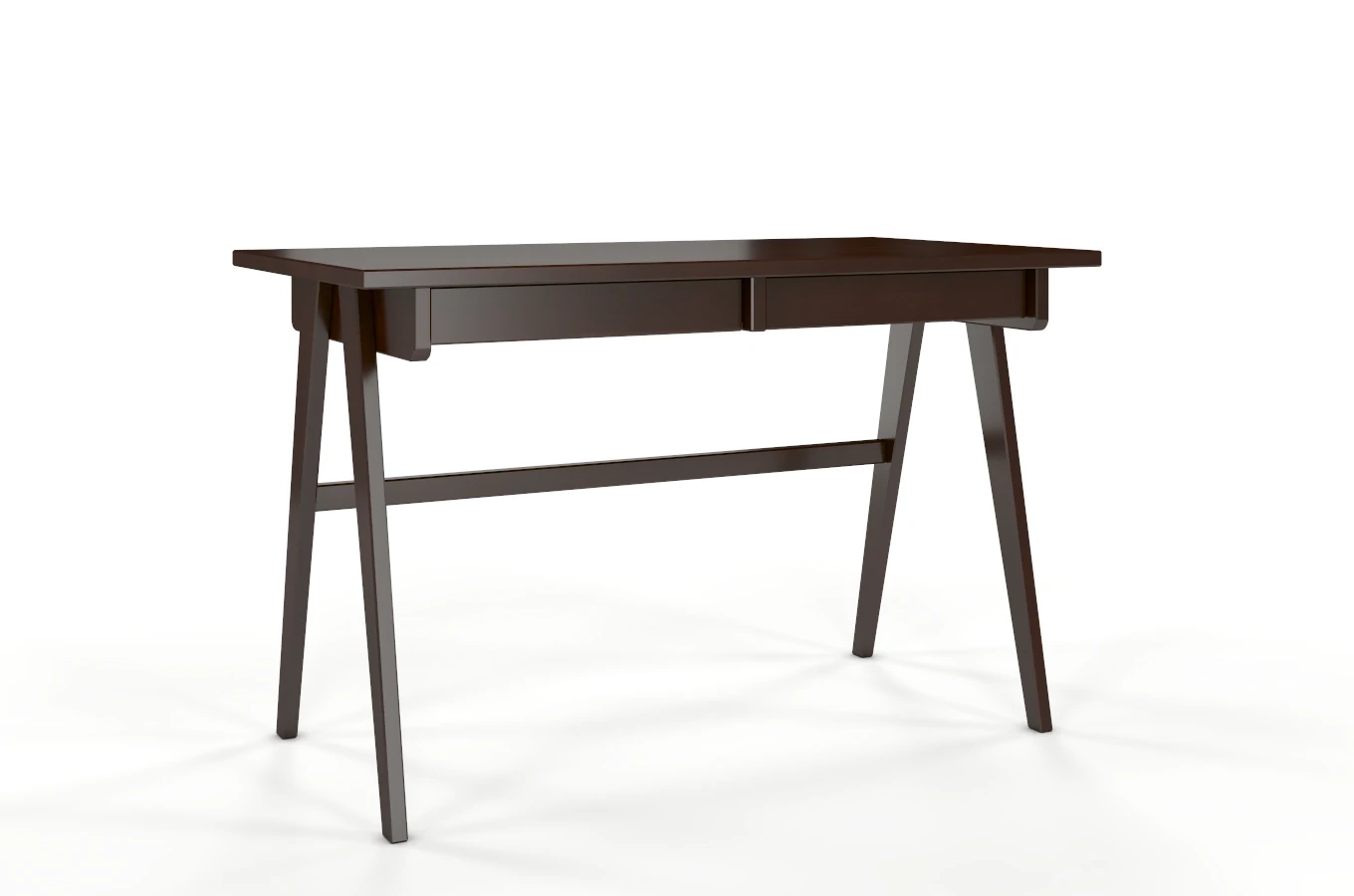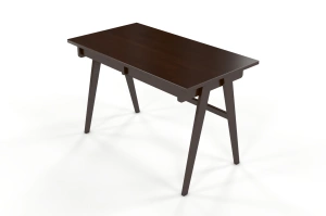Wyrazista forma jest doskonałym odzwierciedleniem połączenia piękna natury z rzemiosłem stolarstwa. Blat biurka cieszy oko subtelnym rysunkiem słojów, a każdy detal świadczy o wysokiej jakości wykonania. Ponadto, wykończenie lakierem nie tylko dodaje elegancji i głębokości barwy, ale także zabezpiecza powierzchnię mebla, chroniąc go przed uszkodzeniami i zużyciem.
